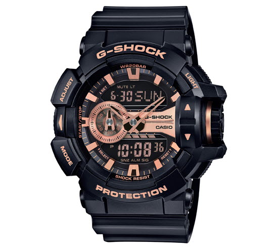 직관적인 작동을 지원하기 위해 슈퍼 터치 G-SHOCK에서 대형 로터리 스위치를 탑재한 NEW GA-400 컬렉션을 출시한다. 기본적인 G-SHOCK 블랙 디자인에 힙합 아티스트나 비보이 패션 아이템을 모티브로 하여 골드와 실버로 장식하였다. 또한, 액세서리와 함께 케이스, 밴드, 문자판에도 블랙과 골드 또는 실버를 더해 과감하고 세련된 디자인을 선보였다.