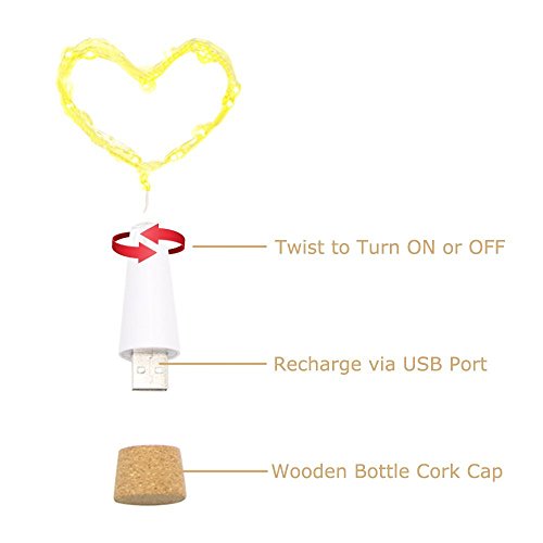 Wine Bottle Lights,iMazer Rechargeable USB Powered Cork Copper Wire String Starry LED Light for DIY,Party,Home Decor,Christmas,Wedding or Mood Lights Water Bottle Lights (Warm White 4 Pack)