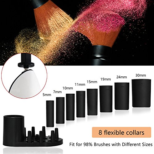 - 8 MAKEUP BRUSH HOLDERS:8 different sizes to fit different brushes, suitable for 95% makeup brushes in the market. which means you can easily clean many brush sets together with this automatic brush cleaner without messy and time-consuming process.