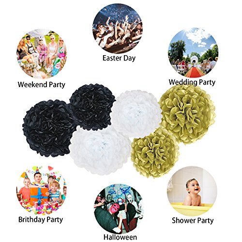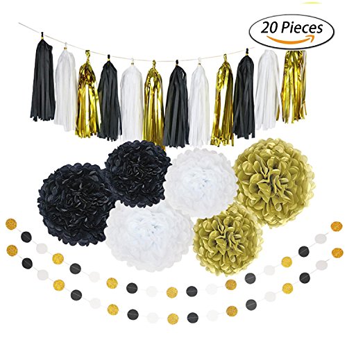 Blinbling 20 Pcs Black White and Gold Tissue Pom Poms for Birthday Wedding Party Decorations
