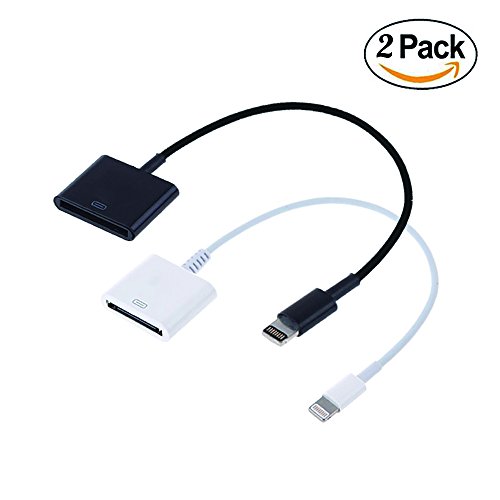 2 Pack of Superior Quality 8-Pin Lightning Male to 30-Pin Female Cable Adapter Charger in Black and White.