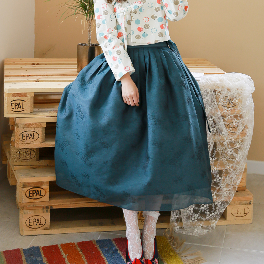 생활한복 꽃내음 북청색 허리치마