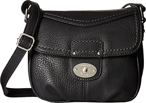 Adjustable crossbody strap. Snap-flap closure. Exterior features slip pocket at front, zip pocket at back, polished hardware, and contrast stitching. Flat, branded base. Lined interior flaunts back wall zip pocket and two slip pockets. Imported.