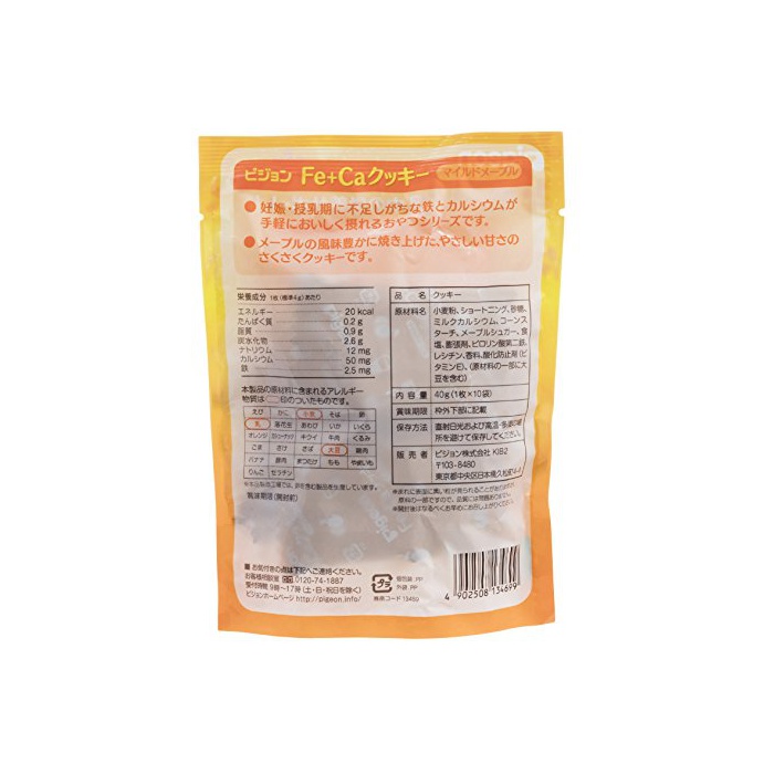 원본상품명: ピジョン ?分&カルシウム Fe+Caクッキ? マイルドメ?プル 40g×5個