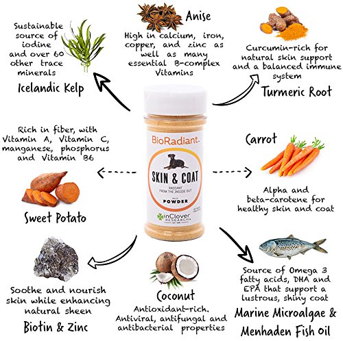 Developed by a biochemist as a clean, easy alternative to fish oil, BioRadiant provides a complete, whole-body approach to healthy skin and coat from the inside out! Carrot, coconut and Omega-3 Fatty Acids support a sleek, glowing coat while clinically-tested Biotin and Zinc soothe and nourish skin. Curcumin, sweet potato and anise complete this pure, antioxidant rich formula.