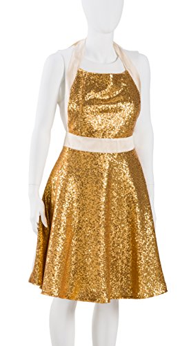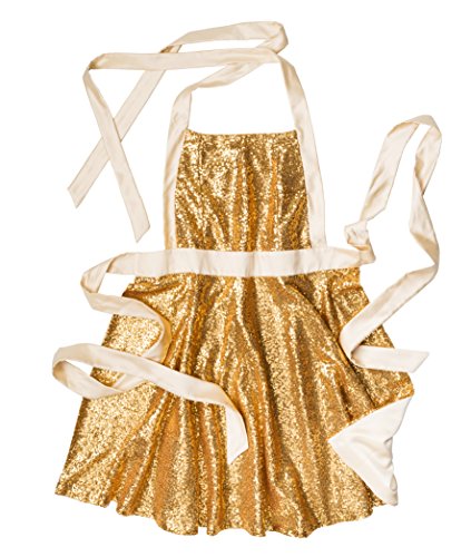 Aprons by JeM Flouncy Gold Sequin Hostess Apron, Hand Made in USA, Machine Washable
