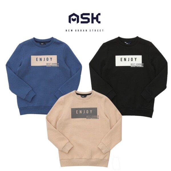 쮸리 기모 소재의 베이직 라운드 맨투맨 티셔츠. 가슴에 후막 나염을 사용하여 입체감을 주었고 3가지 컬러 웨이로 유니 아이템으로 착용하기 좋은 제품.