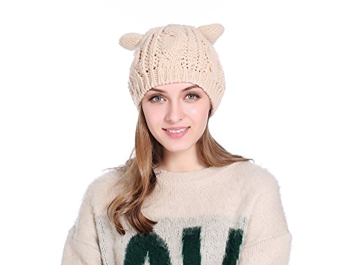 Binding : Apparel Product Description Owlgift Womens Winter Thick Cable Knit Beanie Hat Cat Ear Crochet Braided Knit Caps Features: Stay warm in this fall and winter with this ultra-thick knit beanie cap hats. Large enough to wear over ears during the brutal cold. Super Great comfortable fit. ONE OF OUR MOST GREAT KNIT BEANIE HATS Perfect for outdoor activities such as skating, skiing, snowboarding, simple walks or just looking stylish, ideal for Fall and Winter. The Hottest Style Worn by Celebrities for Men's, Women's and teens. Wear as a straight short beanie skull or slide on and pull back and down to achieve the slouchy look. GREAT QUALITY! Only the softest highest quality materials were used to knit this ultra-warm winter accessory. Each color is Beautiful and Comfortable.