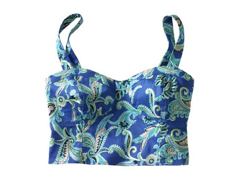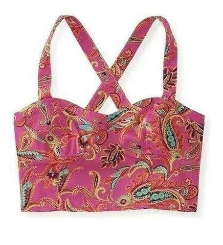 When you're in the mood to let loose, pop on Aero's Cropped Paisley Corset and get noticed! It's allover paisley print is splashed with a radiant range of stunning hues, while a stretchy elastic back and button-closure straps ensure a snug fit. Match it up with neon capris and take a walk on the sassy side. Slim fit. Style: 2965. Imported. Material: 97% Cotton, 3% Spandex. Machine wash/dry. **Manufacturer Description Used**