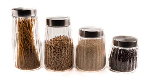 Ripple Food Storage Glass Jar Canister with Airtight Brushed Metal Lid, 30 Ounce