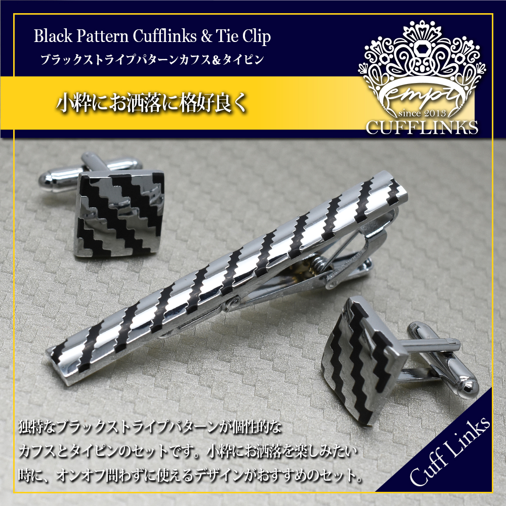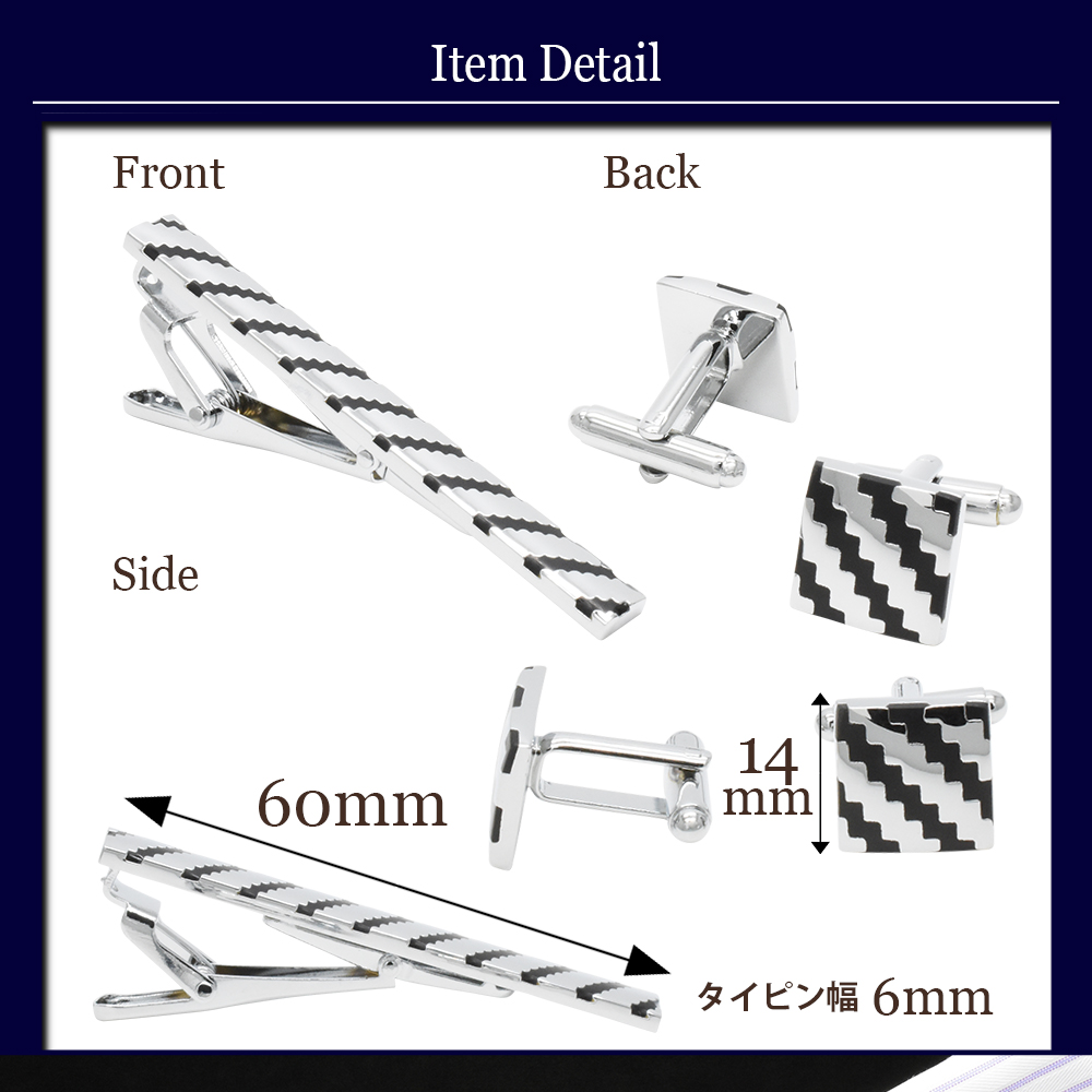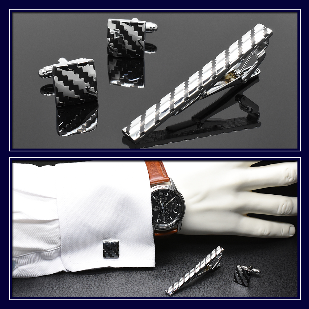 ■ 商品名 : カフス タイピン セット カーボン風 ストライプ