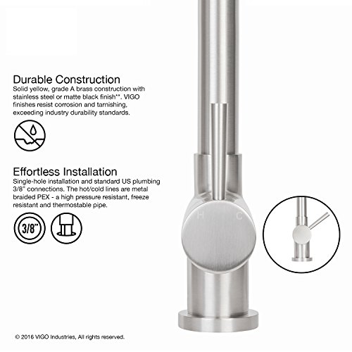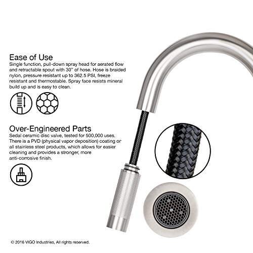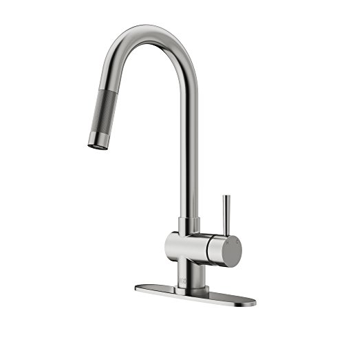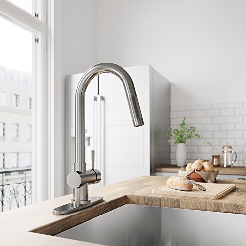 VIGO Gramercy Single Handle Pull-Down Kitchen Faucet with Deck Plate, Stainless Steel