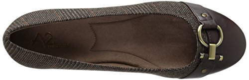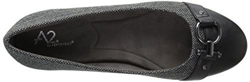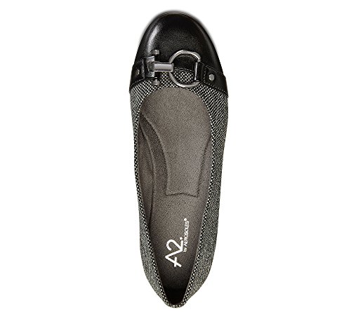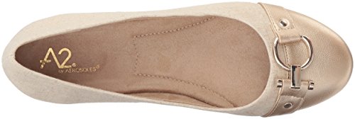 Product Description A2 by Aerosoles. As you plan this season's wardrobe, factor in these versatile casual flats that also fill your ballerina flat quota. The multi-fabric upper and overall design is smart and chic. Toggle and ring metal ornament with side studs adds style. Feel the difference an Aerosoles memory foam footbed makes. Slip on. ¾” heel. 0