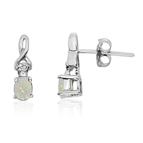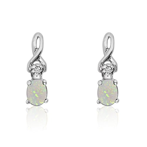 14k White Gold Oval Opal and Diamond Earrings