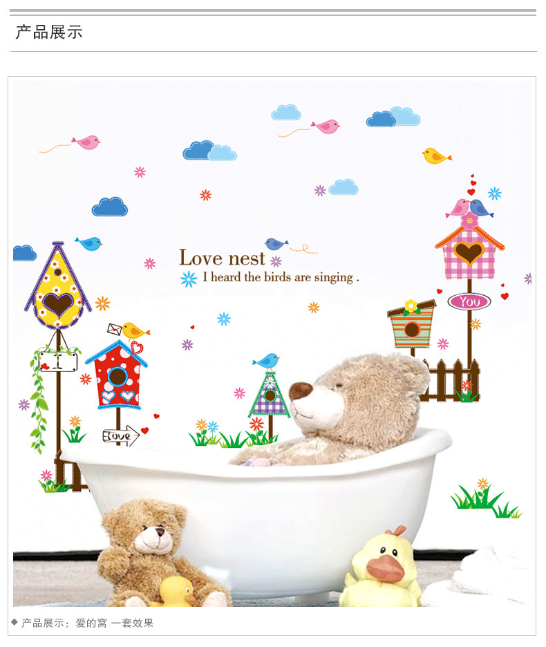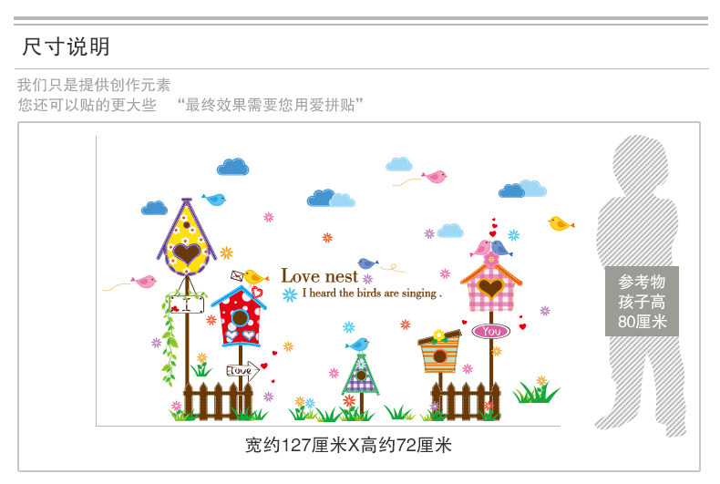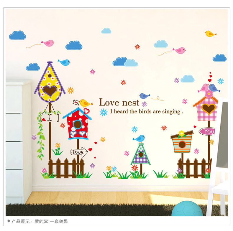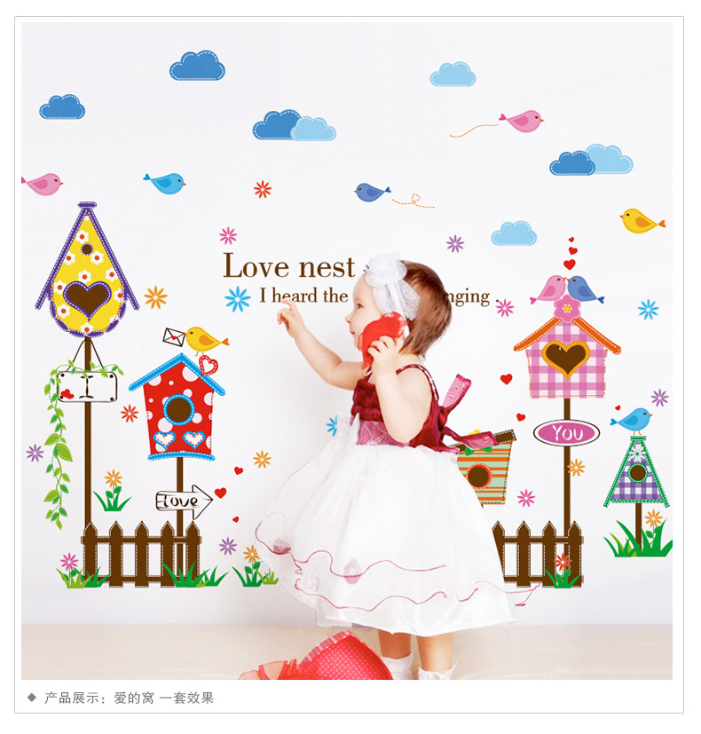 墙贴纸贴画墙角围栏栅栏信箱墙壁装饰蓝天白云卡通儿童房间幼儿园