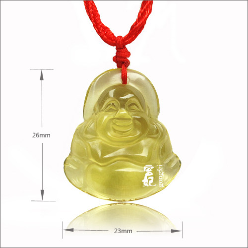 宫妃 开光  天然黄水晶吊坠 弥勒佛挂件 大肚佛女士项坠