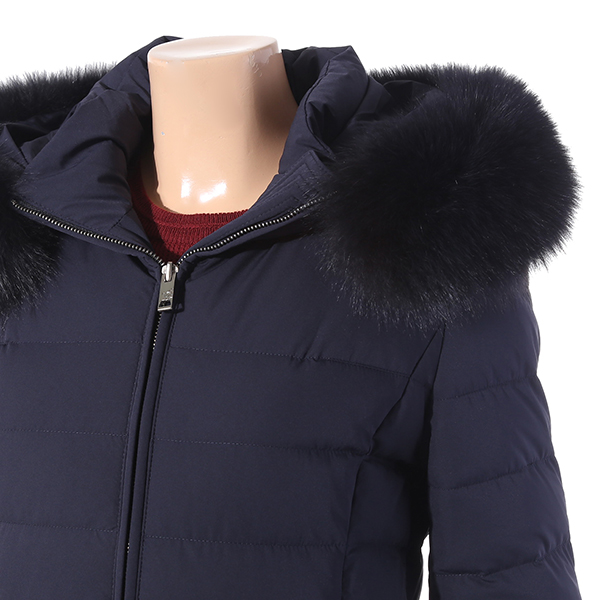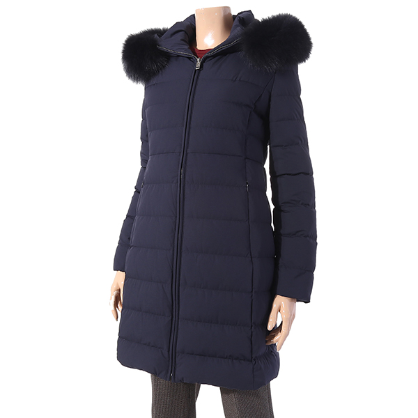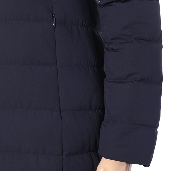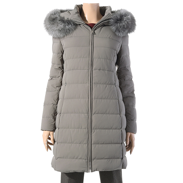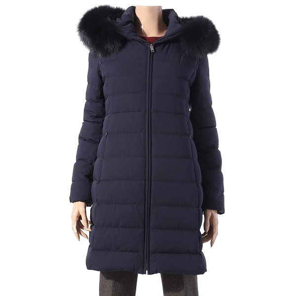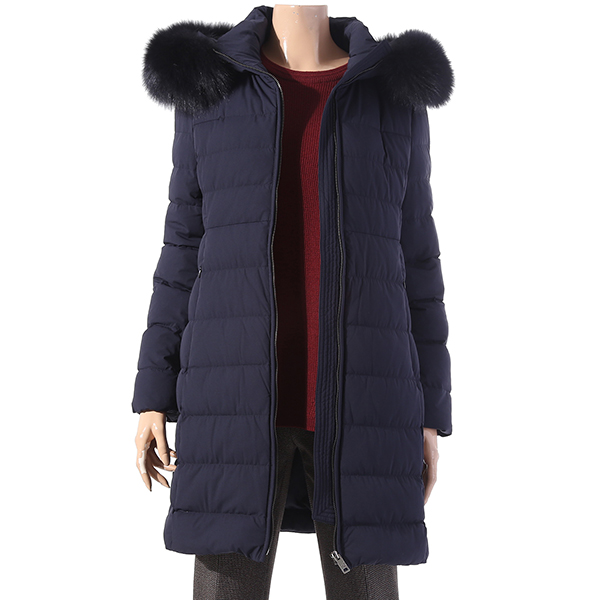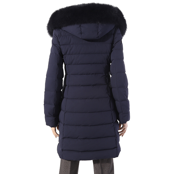 실루엣의 덕다운으로 풍성한 블루폭스가 넥크와 후드둘레를 감싸주어 포근한 느낌을 주고 여성스러움을 더해줌.
