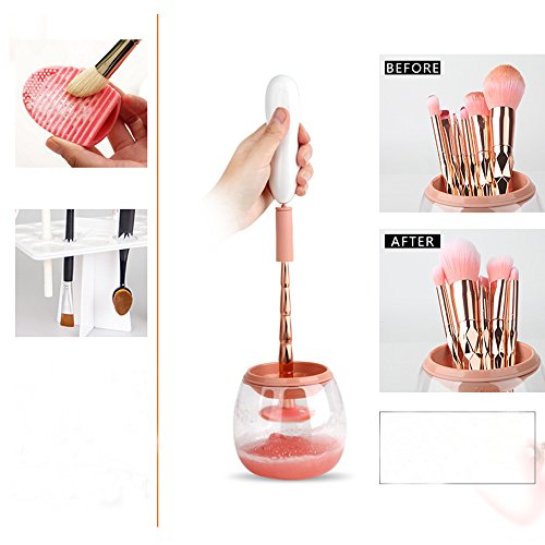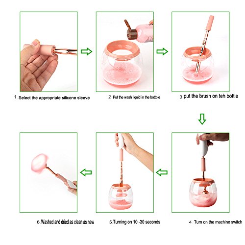 - Easy to Operate – Just 4 Steps: 1-Put water & soap into the bowl. 2-Dip & dunk the brush in soap water. 3-Spin to clean. 4-Spin to dry. Besides, 8 collars fit for most makeup brushes with various sizes.