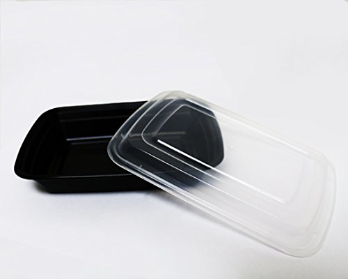 The 1 Black Plastic Microwavable Reusable Food Container with Lid 50 COUNT (32oz)