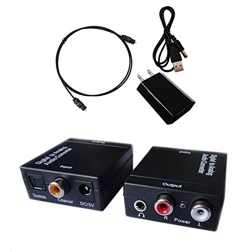 Easyday Digital to Analog Audio Converter with Digital Optical Toslink and S/pdif Coaxial Inputs and Analog RCA and AUX 3.5mm (Headphone) Outputs - 6 Foot Heavy Duty Optical Toslink Cable with Gold Plated Connector Tips Included