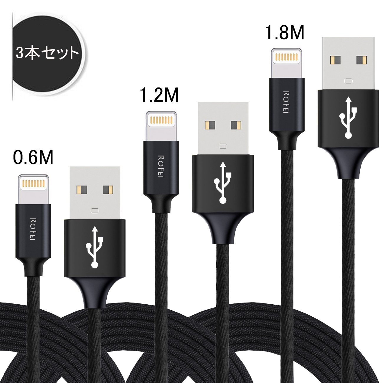RoFei Lightning Cable 【3 sets】 0.6M + 1.2M + 1.8M iPhone Charge Cable High Endurance Synchronization and Charging iPhone 8, 8 Plus, 7, 6s, 6+, 5, 5c, 5s, SE, iPad, iPod