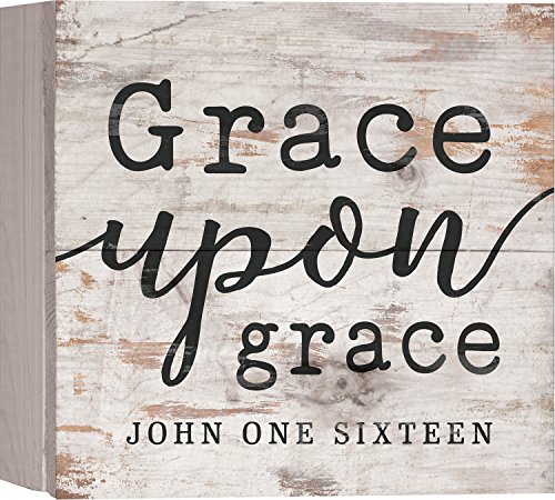 Grace Upon Grace Script Design White Wash 7 x 7 Inch Solid Pine Wood Boxed Pallet Wall Plaque Sign