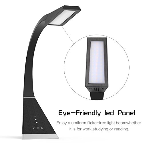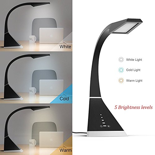 Desk lamp with 600 Lumens and Extra Bright - Powerful light with 5 dimming levels. Adjust it based on the time of the day, the room, or your mood. Also comes with 3 preset light color temperatures to ensure the perfect light setting to suit your needs and your moods. Different options for night stands, reading, offices, bedrooms, garages, etc.