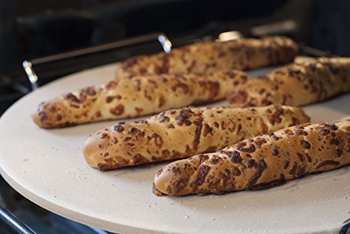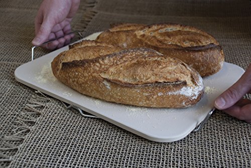 -. Feature : Baking stones are convenient for heating and re-heating ready-made frozen pizza and baked goods / Wire handle rack allows heated stone to be safely transported to serving table / Stone requires no seasoning or conditioning
