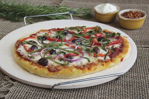 -. Title : Pizzacraft Ceramic Baking/Pizza Stone with Wire Frame