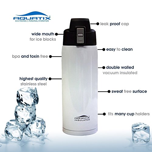 -. Title : Aquatix Flip Top Insulated White Sport Water Bottle Double Wall Insulation 21 Ounce Multipurpose thermos Personal Hydration Vacuum Sealed Keeps Your Drinks Cold for 24 Hours and Hot for 12 Hours Perfect for Hiking Gym Fitness Athletes BPA Toxin Free Eco Friendly