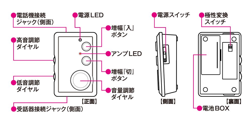 ● Adapter that makes the incoming voice of the phone easier to hear ● ● «Features» ● Supports the voice of a telephone that is difficult to hear ● «Specifications »High sound and bass adjustment are possible.