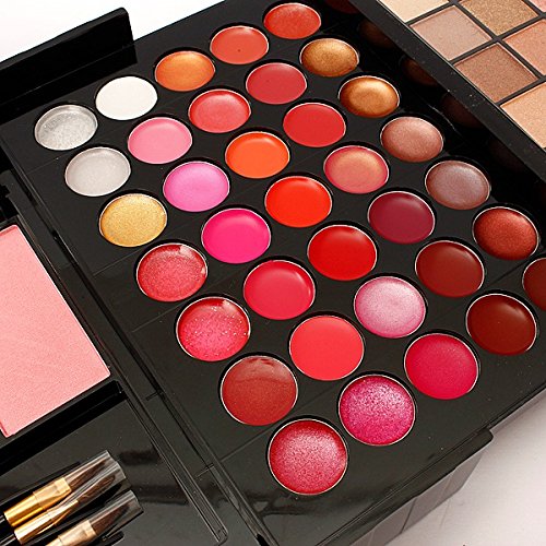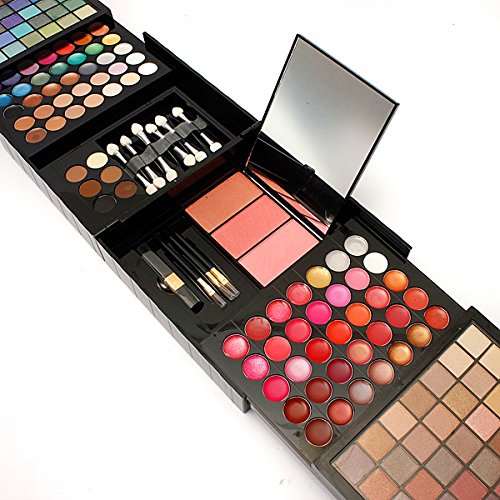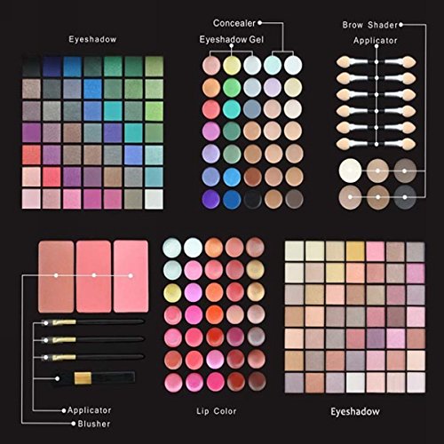 Studio : BGWH Publisher : BGWH Product Description Features: Wonderful 177 full color palettes eyeshadow sets. Very pigmented and vibrant, palettes includes matte and shimmer eye shadows, easy to match your look! 168 Ultra Shimmer Eye Shadows, combination of 98 square and 70 round shades, ultra shimmer effect. 6 Lip Colors, combination of shimmer (just a very little hint), pearl and matte effect. 3 Blush and Contours, the blush colors are all beautiful and can compliment any skin tone. Including 5 brushes, 2 puffes and a small mirror.
