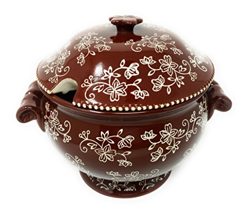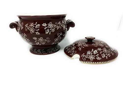 (Temptations)/Kitchen Dining/Tableware/DIRECT FROM USA/Temp-tations 3qt Soup Tureen with Lid, Stoneware (Floral Lace Chocolate)