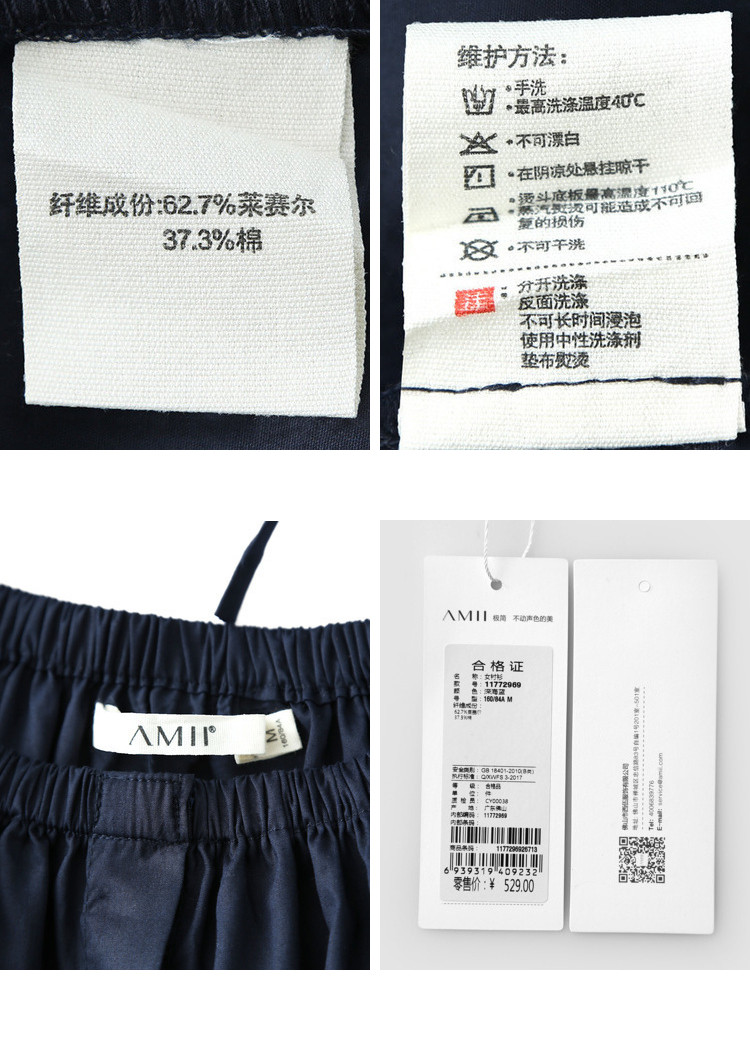 | 洗涤标准: | 不可浸泡悬挂晾干40℃以下手洗110℃以下垫布熨烫不可漂白不可干洗 |