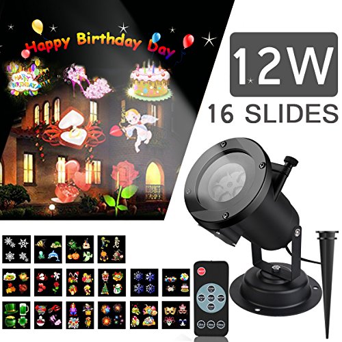 Led Projector Lights ,SIEGES 16 slides Party Decoration Light IP65 Waterproof Landscape Spotlight with Remote Control , Fairy Indoor Show Holiday Home Decoration for Kids Birthday Wedding Party