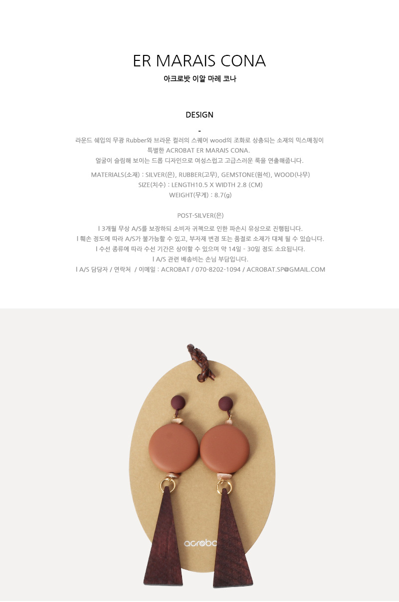 l 라운드 쉐입의 무광 Rubber와 브라운 컬러의 스퀘어 wood의 조화로 상충되는 소재의 믹스매칭이 특별한 ACROBAT ER MARAIS CONA.