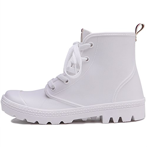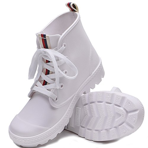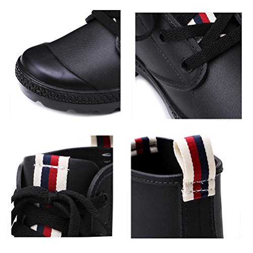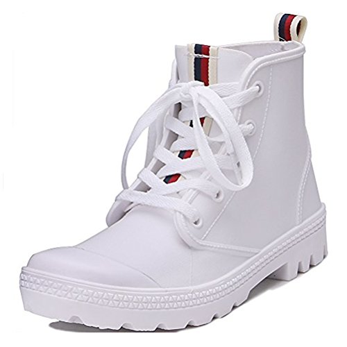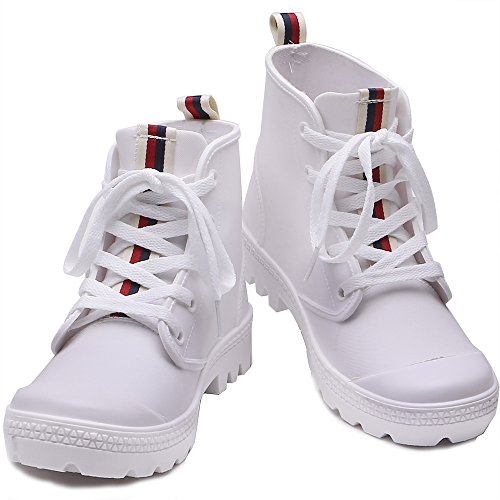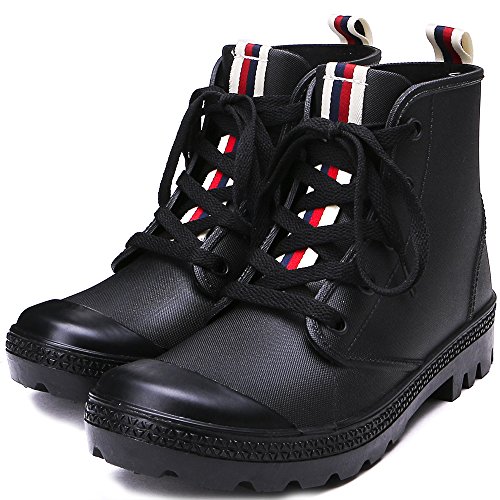 TONGPU Women Striped Rain Boots Lace Up Rain Shoes for Women