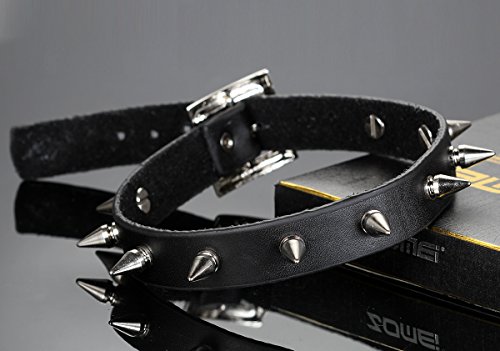 -. Title : Flongo Gothic Black Rivet Leather Spiked Necklace Neckband Choker
