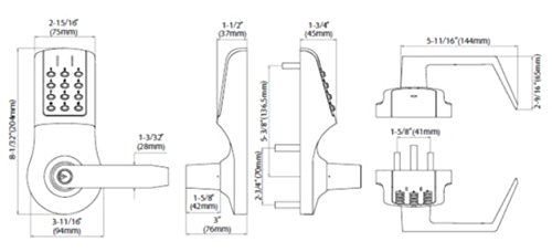 -. Feature : Grade 1 quality / Clutch lever / Commercial Grade 1 ADA Lockset / Twelve button keypad / Backset: 2 3/4 or 2 3/8