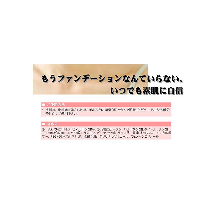 원재료 : 수,BG,《후부로인》,히알론산Na,수용성 콜라겐,발 미치《》산《레치노루》,인산 아스《고비루》Mg,가수분해 엘라스틴,피넛츠유,lavender 수,토코 fellow《루》,카루《보마》,PEG-60수첨 한가《시》유,수 산화Na,커브 re re《루구리코루》,회 노《기시에타노루》