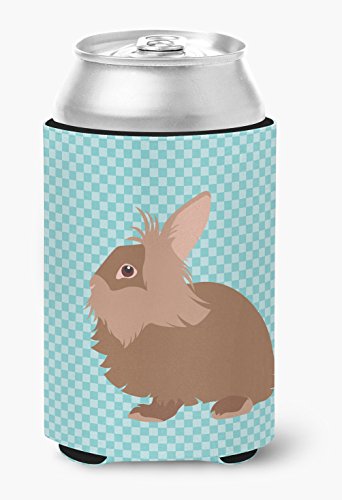 Caroline's Treasures BB8134CC Lionhead Rabbit Blue Check Decorative, Can Hugger, Multicolor