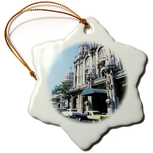 3dRose orn_37739_1 Teatro Nacional Havana Cuba-Snowflake Ornament, 3-Inch, Porcelain