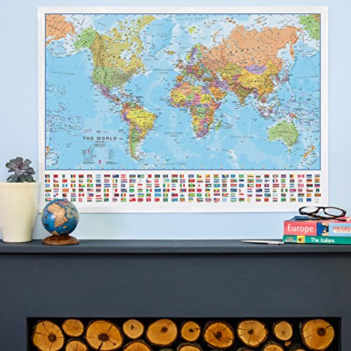 Maps International's large sized world political wall map is a fantastically produced high quality map. Our political world wall map comes with a panel of country flags along the base of the map.