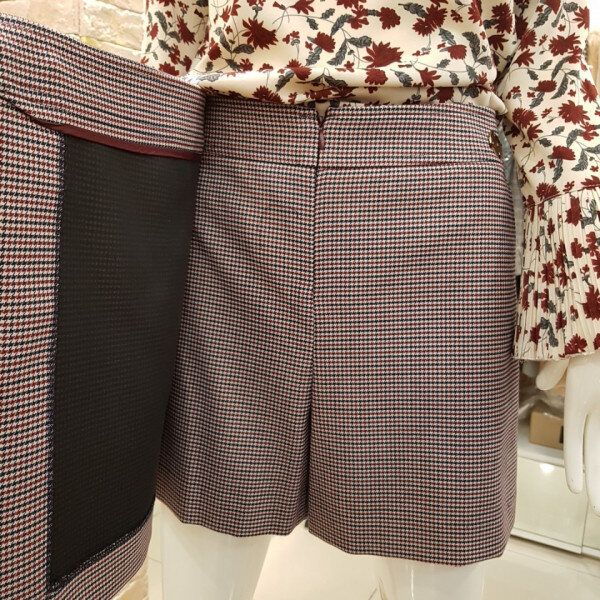 랩스타일에 앞쪽은 치마스타일 뒤쪽은 반바지형태로 되어있으며 약간은 두께감과 편안하게들어가는 신축성있는 소재로 입기늣 편한스타일입니다 총장길이 37센티에 힙단면45센티입니다