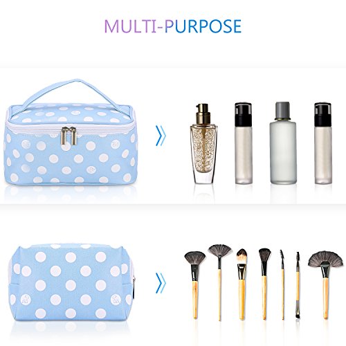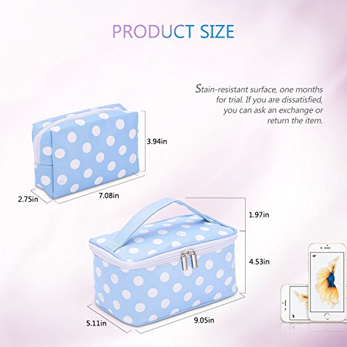 HOYOFO Polka Dot Cosmetic Bag Multifunction Portable Makeup Pouch Travel Organizer Bags Blue, Set of 2