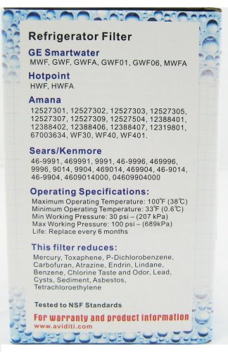 -. Feature : Reduces chlorine taste and smell as well as sediment / Produces cleaner, better tasting drinking and cooking water / Keeps a healthy level of fluoride / 100-Percent Compatible with water filter models: GWF, GWF01, GWF06, GWFA, MWF / Provides optimal performance
