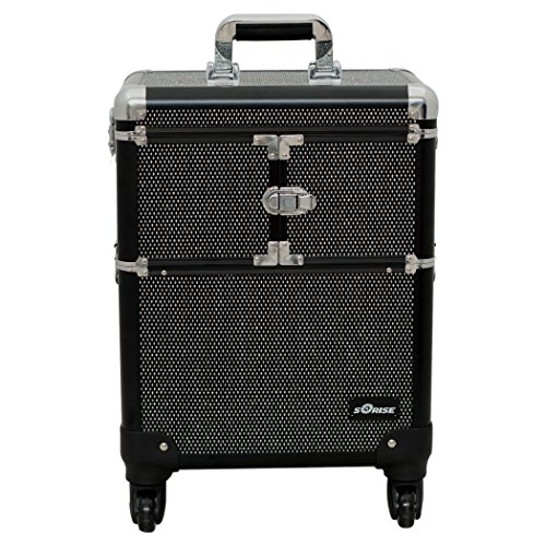 Sunrise E6304 Professional Rolling Makeup Train Case Organizer Storage, Krystal Black