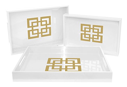 Benzara HRT-97912 Wood Tray, Set of 3, White