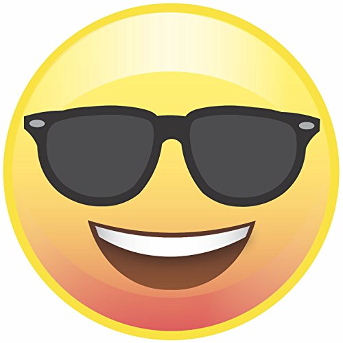 - Really BIG 6 Inch Emoji Face with Sunglasses, High Gloss Resistant Finish, Full Color Face Button