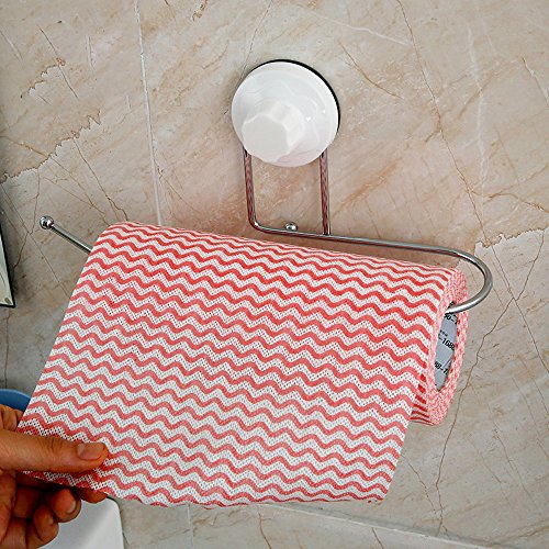 Paper Holder Wall Mounted Metal Towel Hanger Suction Cup for Bathroom & Kitchen